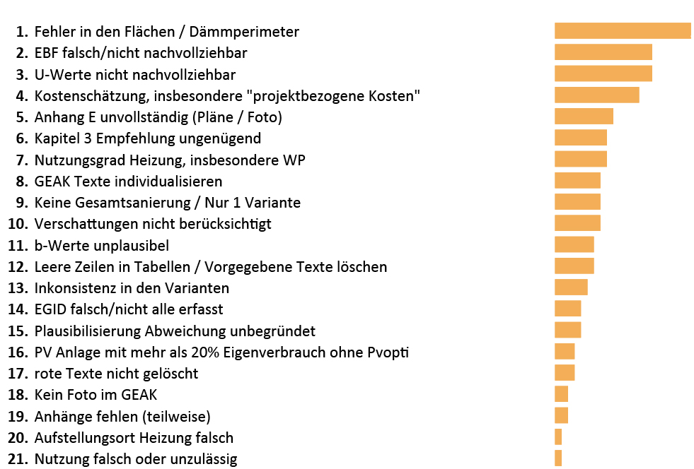 Die Auswertung der Prüfungen aus der Qualitätssicherung haben folgende «häufigste Fehler» hervorgebracht: