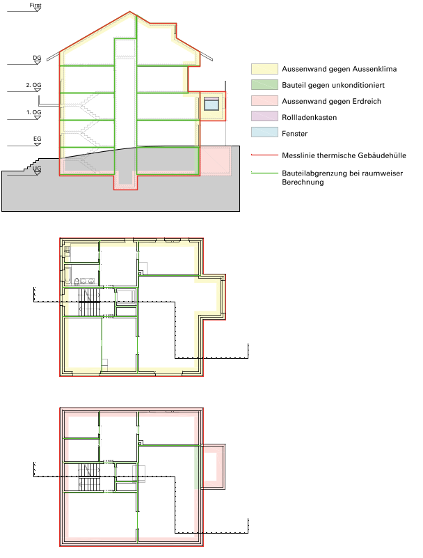 - Schnitt mit Kennzeichnung der thermischen Gebäudehülle