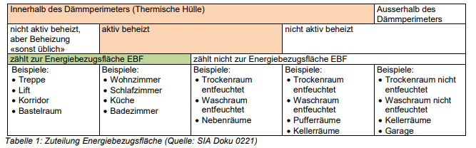 Die EBF Berechnung hat nach den Vorgaben der SIA Norm 380 zu erfolgen: