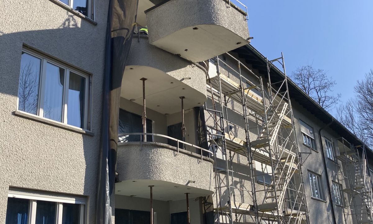 - Der Balkon wurde vollständig zurückgeschnitten und mit Anschlussdornen thermisch getrennt aufbetoniert.